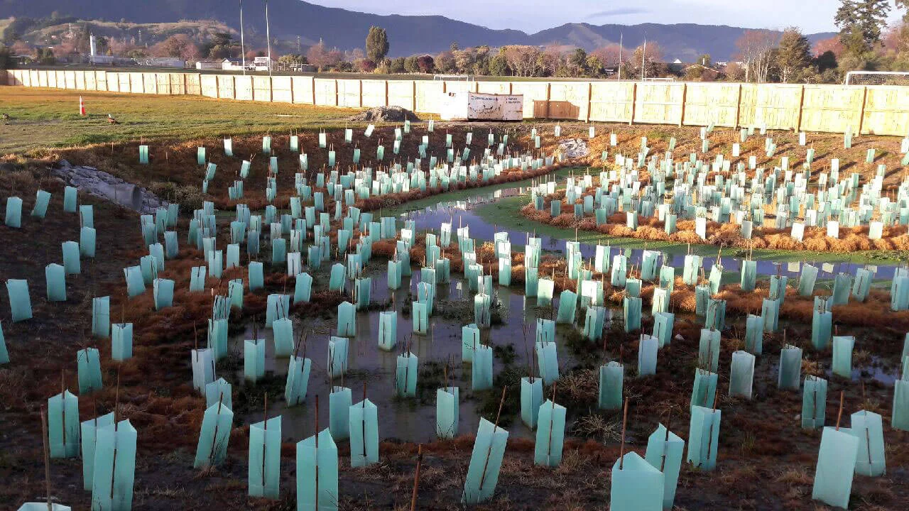 Below are pictures of a Detention Pond. Required as part of the Resource Consent process, storm water, run off areas are common becoming more common in recent sub-division developments.